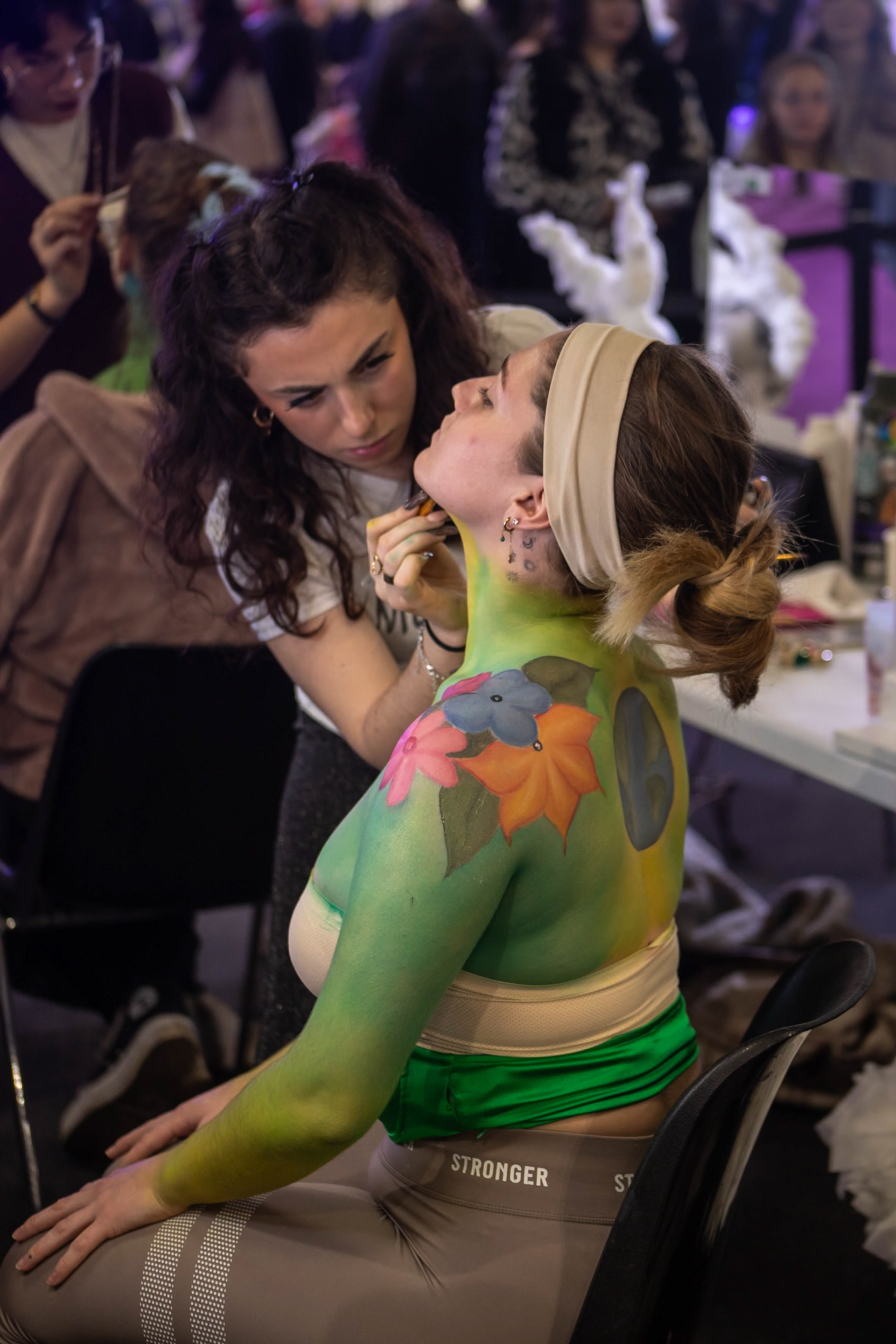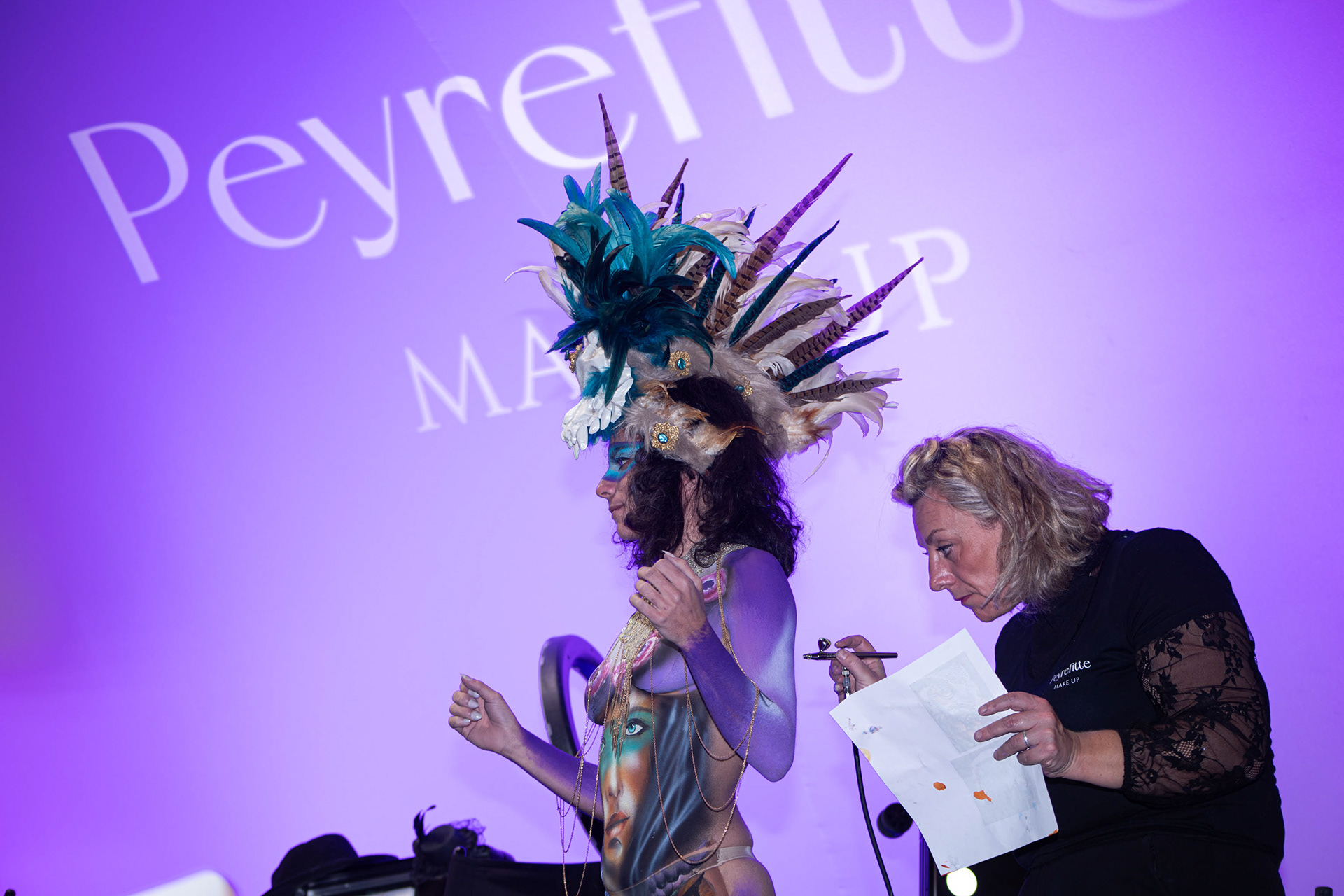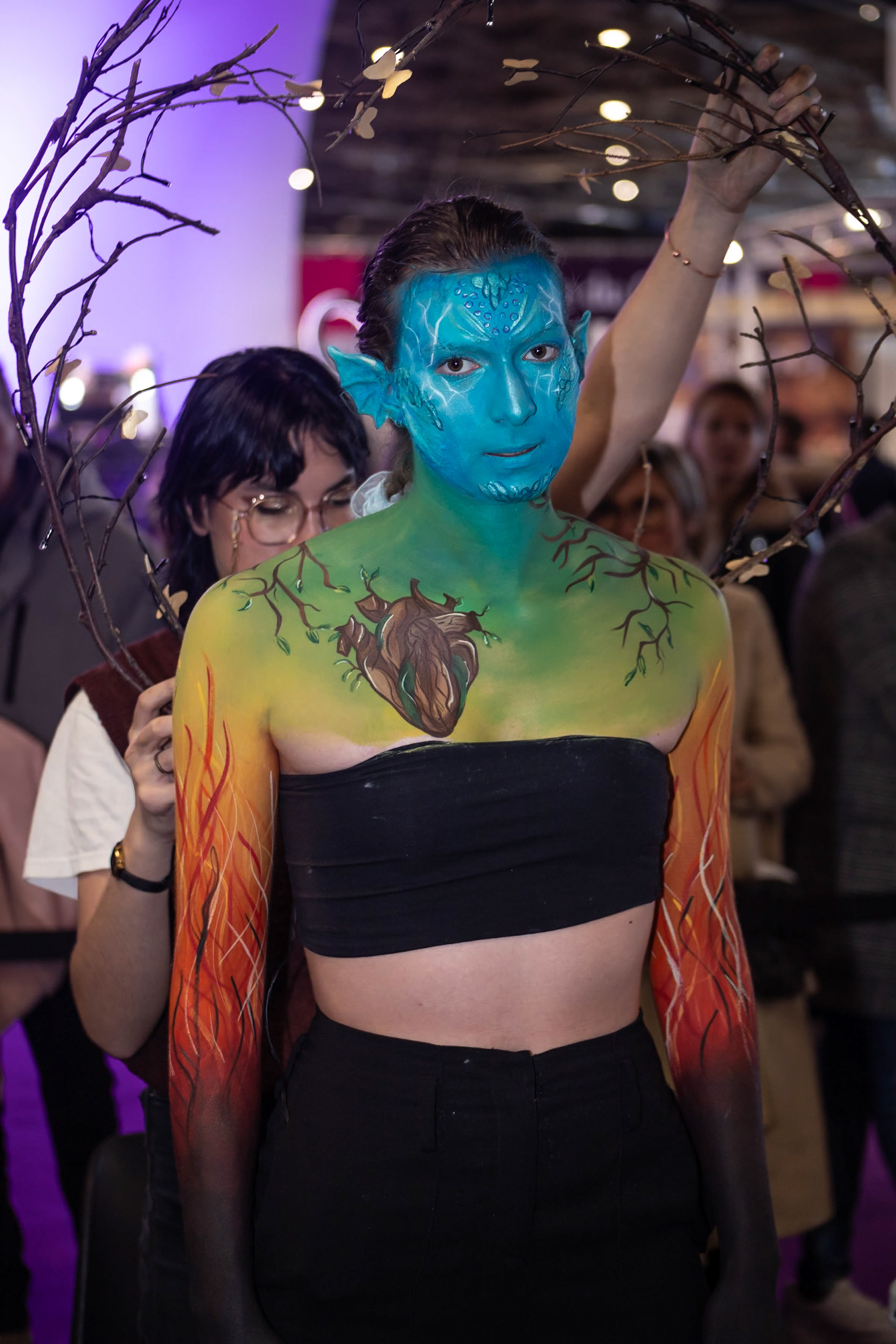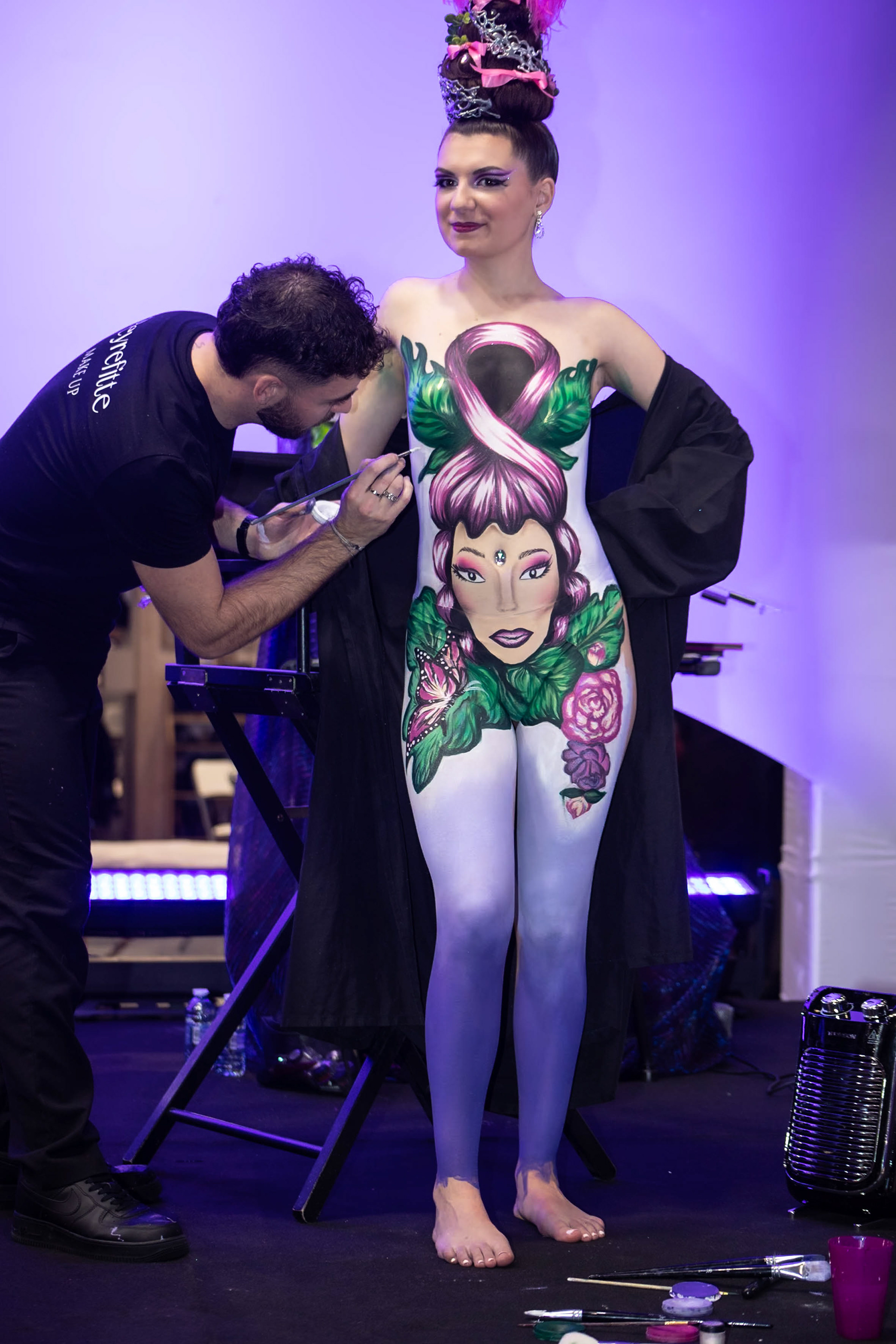 Concours de body painting organisé par l'école de maquillage Peyrefitte à Lyon, travail en collaboration avec Jean-Philippe Darbois.