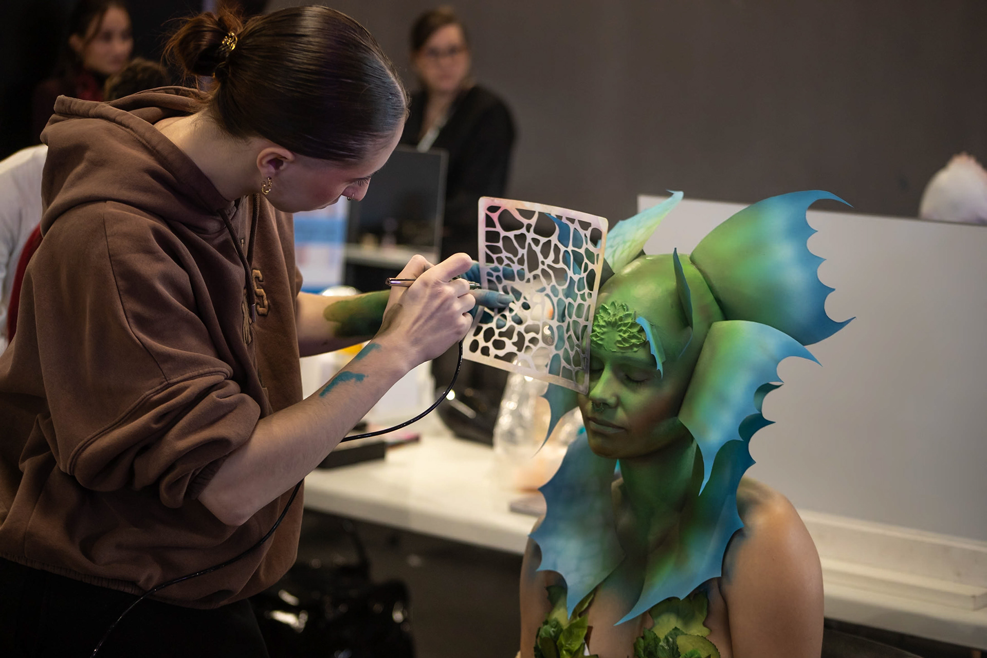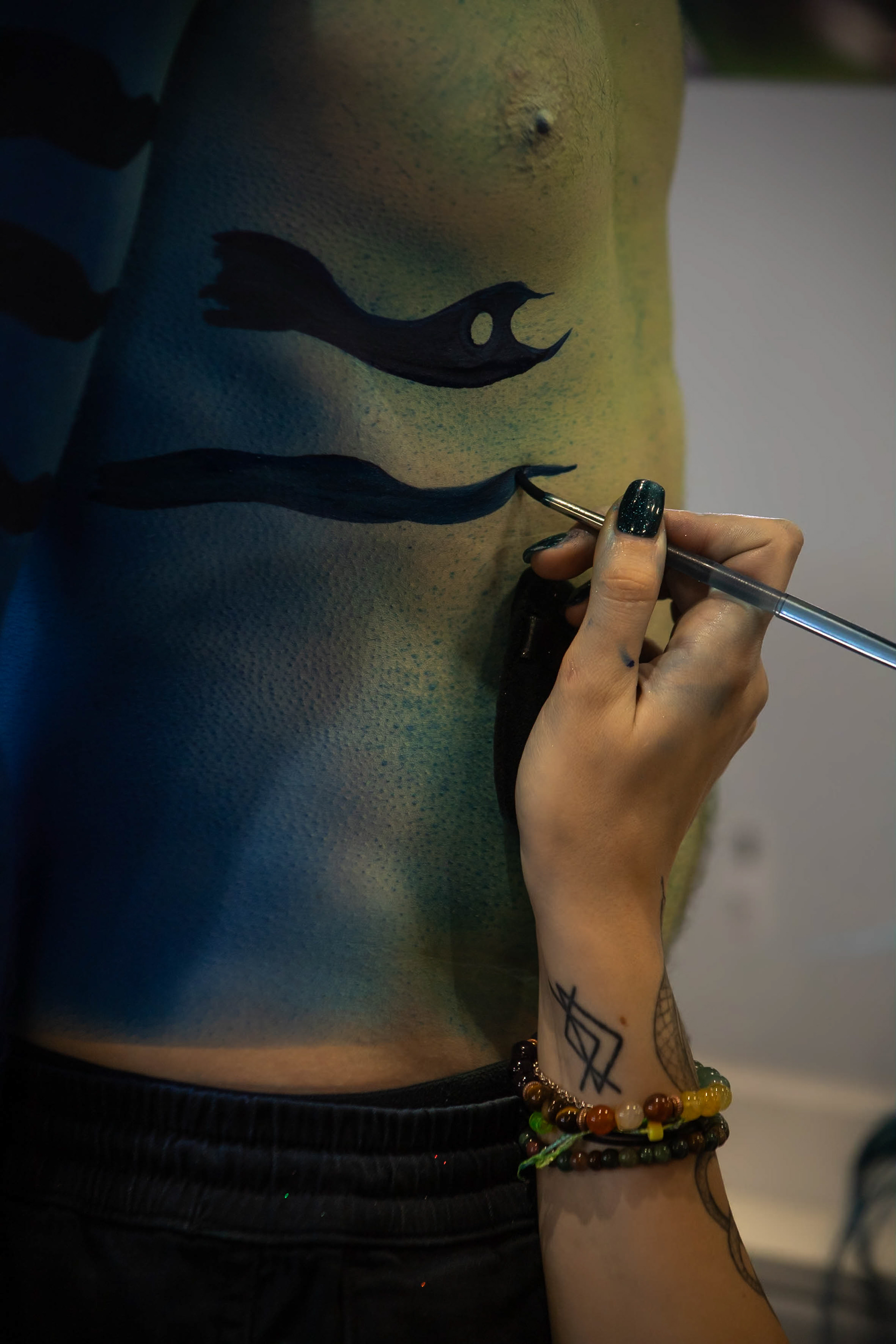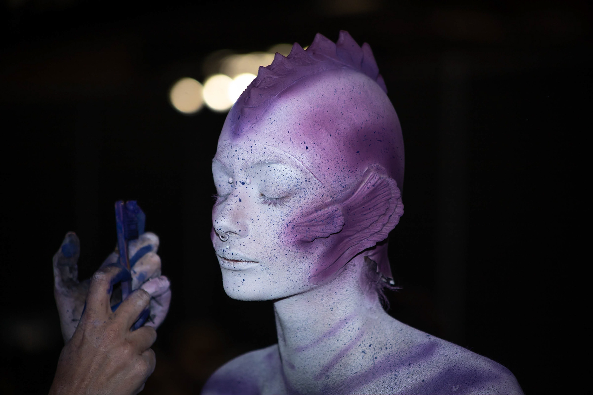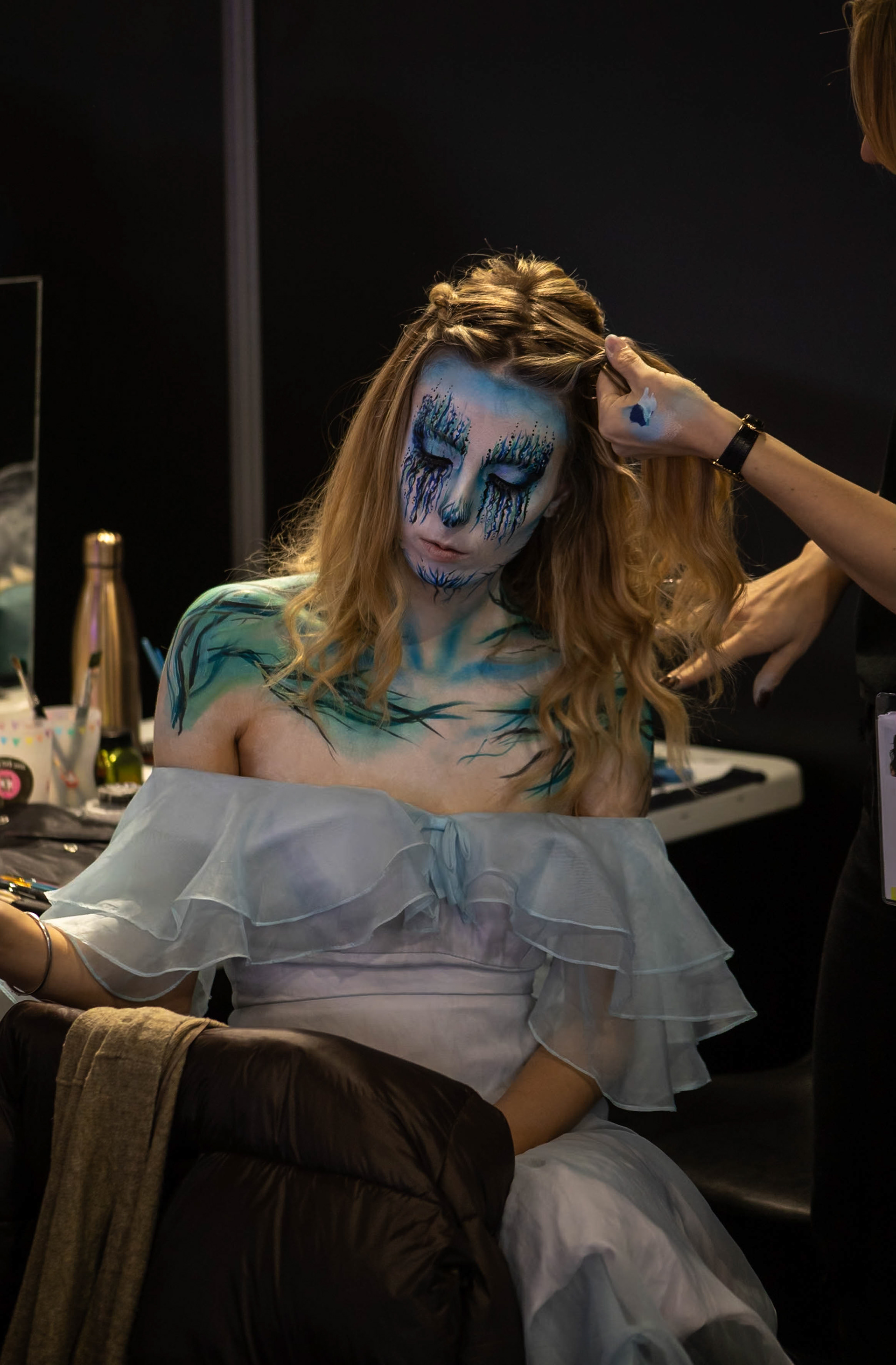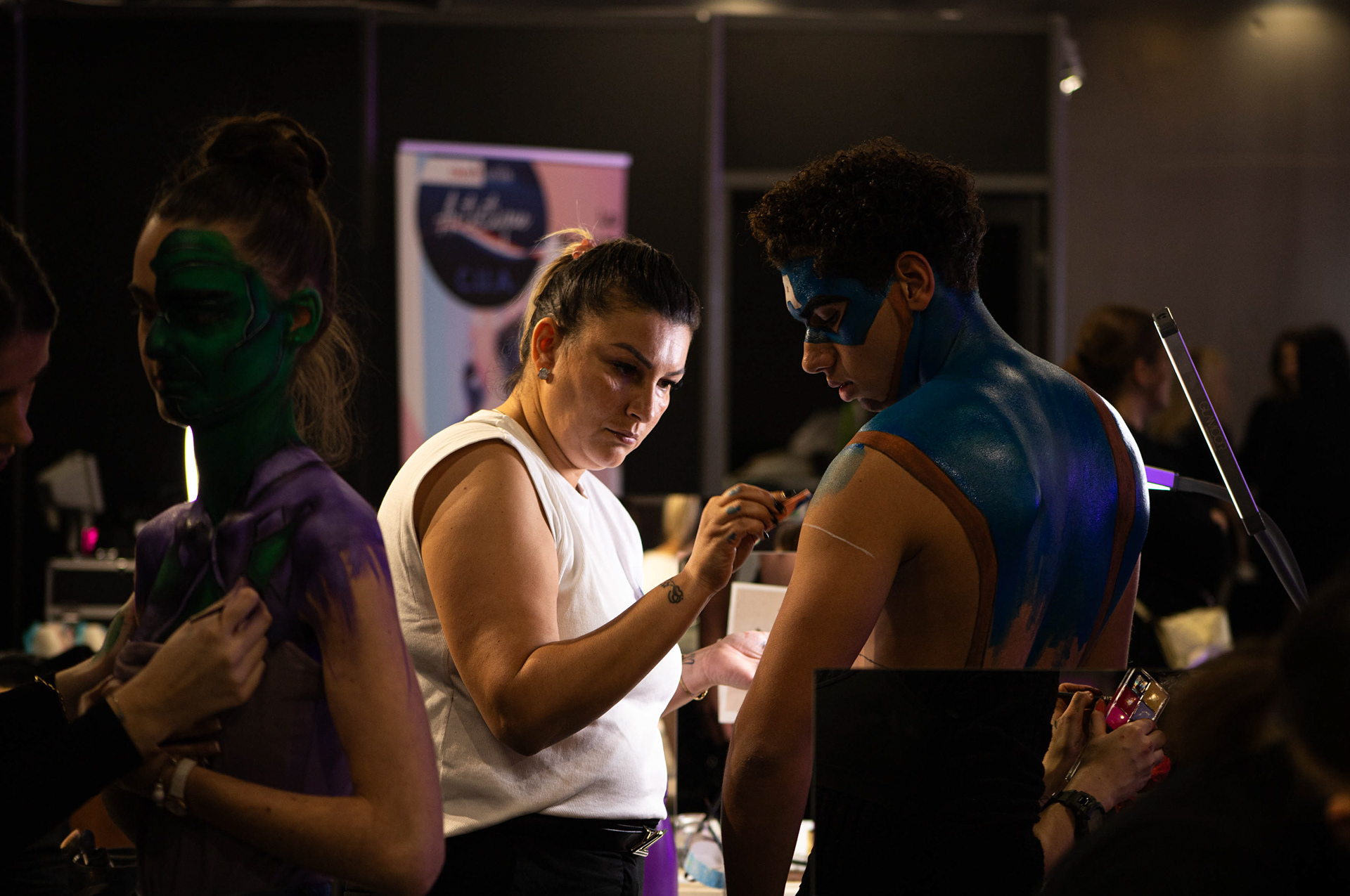 Concours de body painting organisé par l'école de maquillage Peyrefitte à Lyon, travail en collaboration avec Jean-Philippe Darbois.
