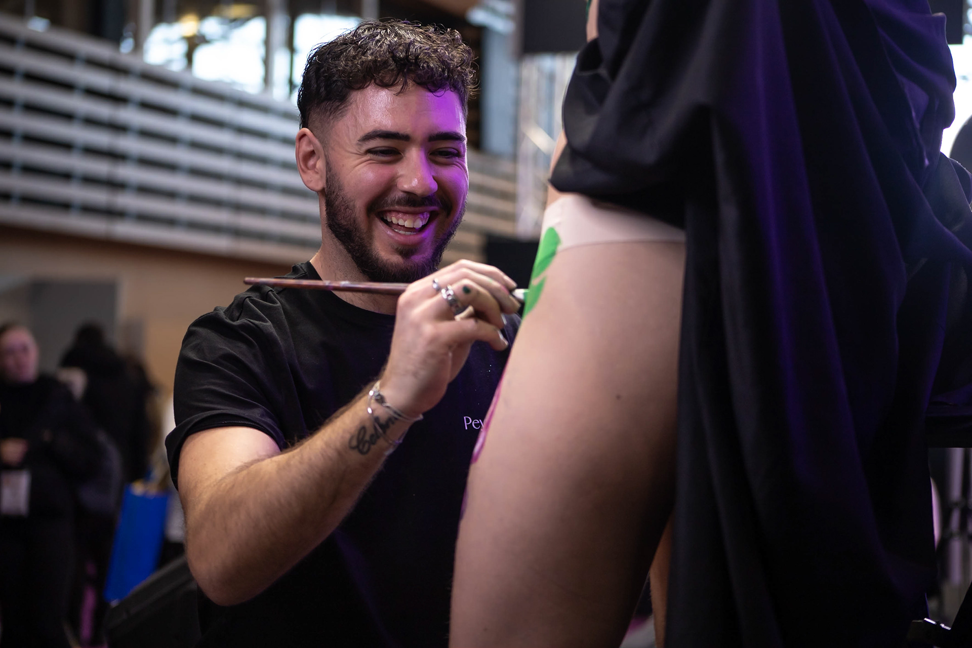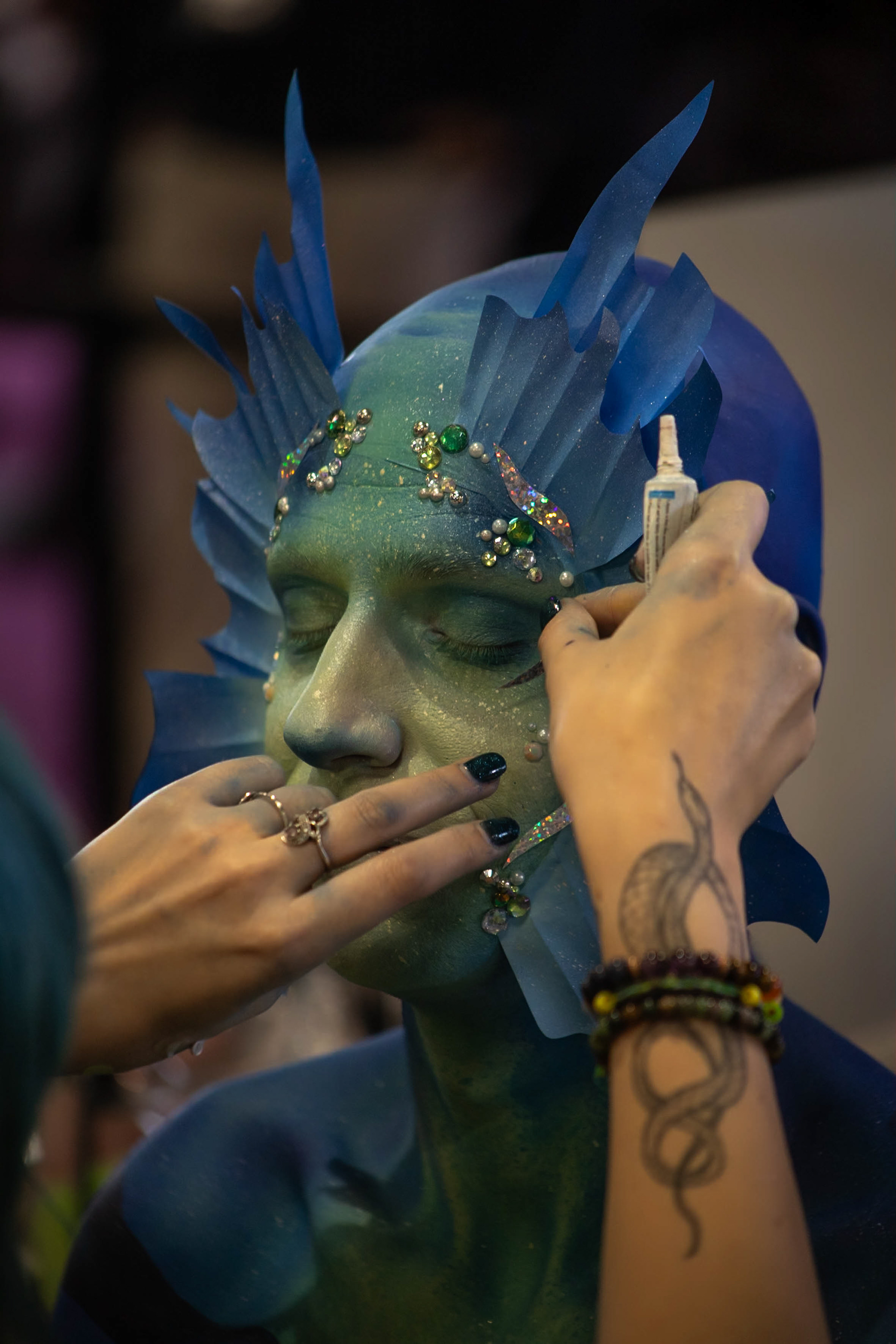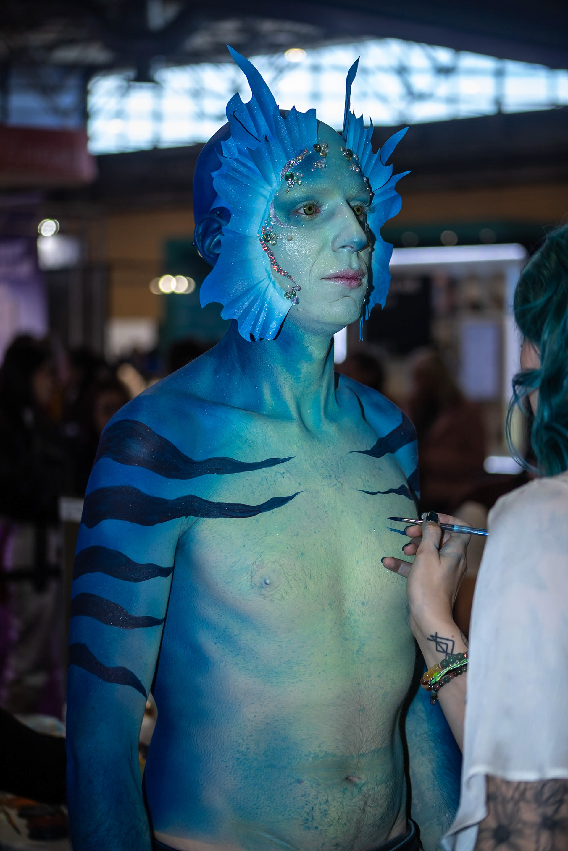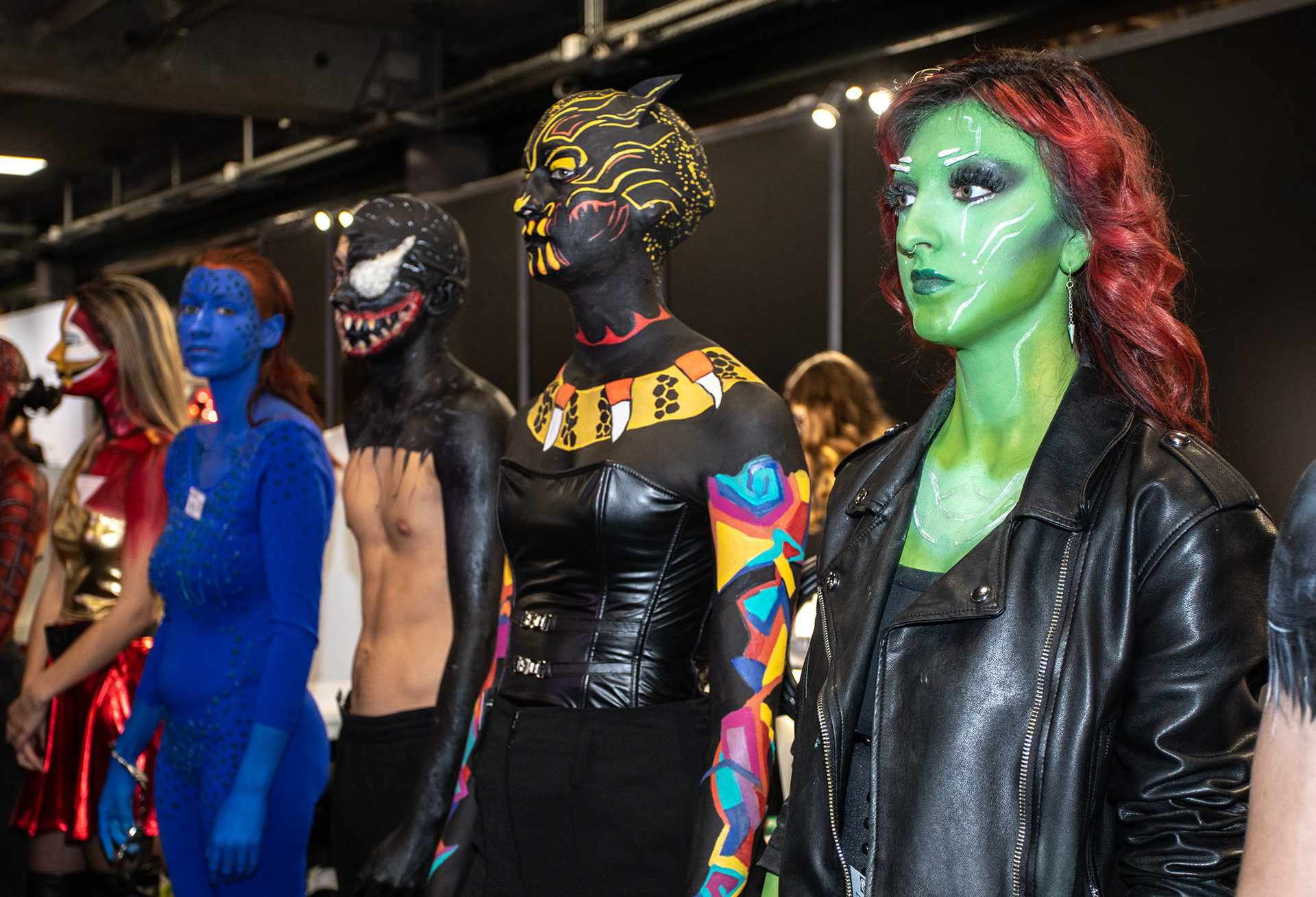Concours de body painting organisé par l'école de maquillage Peyrefitte à Lyon, travail en collaboration avec Jean-Philippe Darbois.